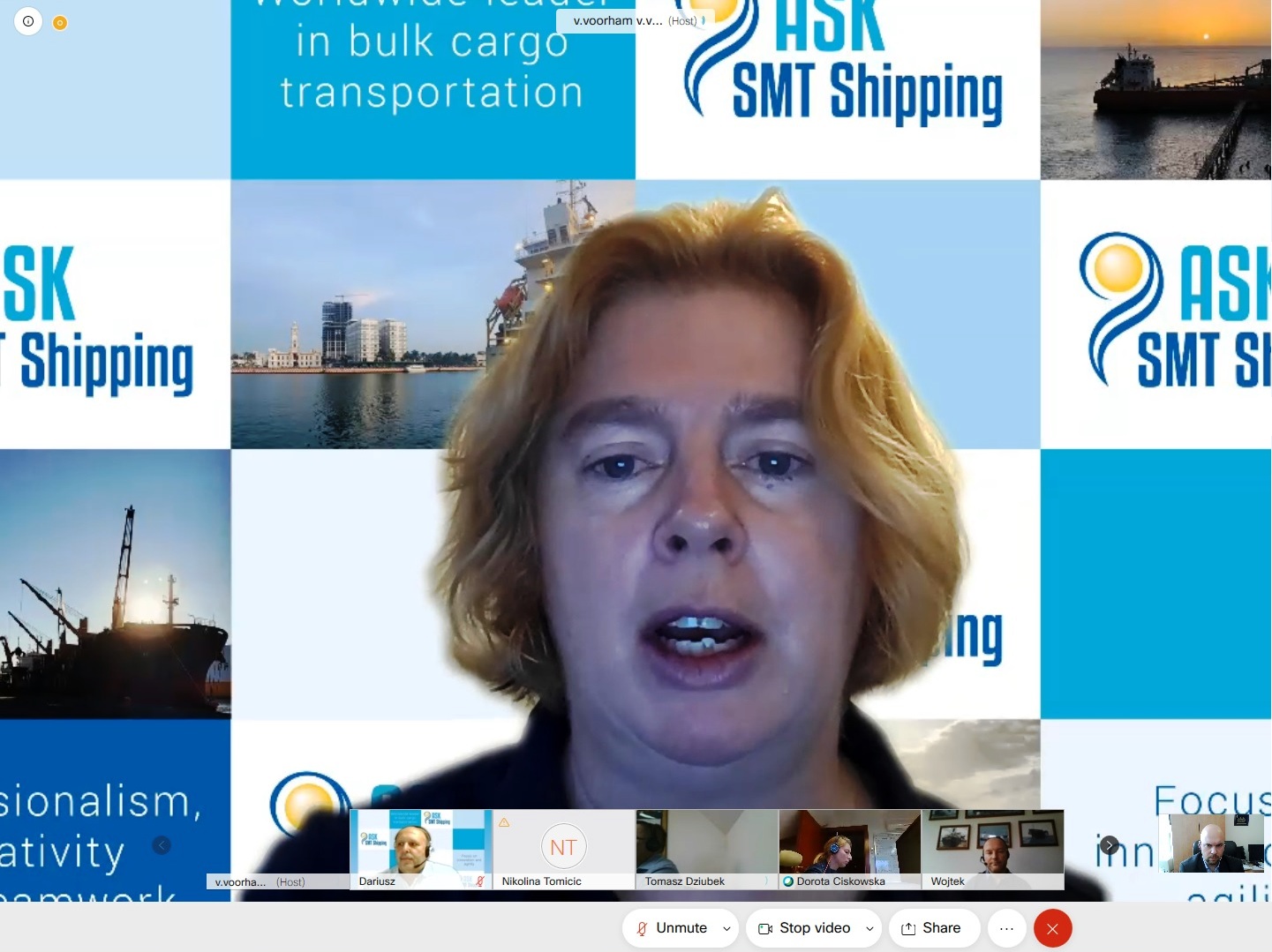 Gospođa Vanessa Voorham upoznala je studente s brodarskom kompanijom, flotom brodova, te s promjenama na brodarskom svjetskom tržištu. Nadalje, istaknula je dobru sigurnosnu organizaciju i značajke sustava za upravljanje sigurnošću koji su na vrlo visokoj razini pri brodarskoj kompaniji SMT Shipping. Capt. Dariusz Stefaniak, Crew Development Manager, održao je drugi dio predavanja koji se temeljio na mogućnostima zapošljavanja vježbenika palube, stroja i elektrotehnike na brodovima kompanije SMT Shipping.